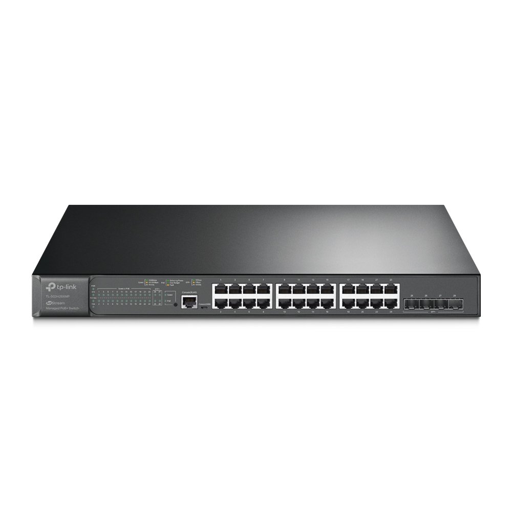 TP-LINK | 24-Port Gigabit and 4-Port 10GE SFP+ L2+ Managed Switch with 24-Port PoE+ | TL-SG3428XMP JetStream | Managed L2+ | Rackmountable